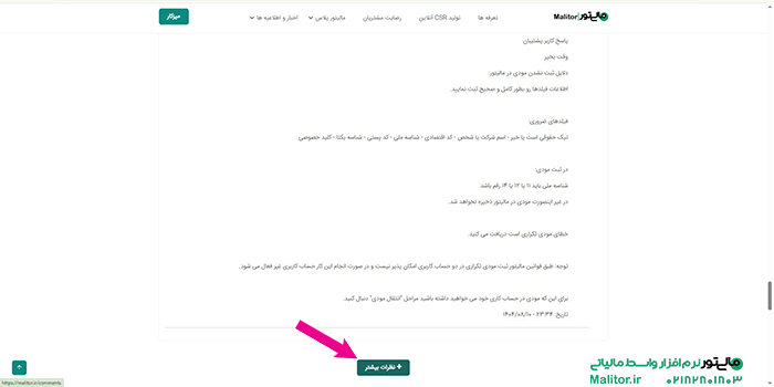 در نرم افزار مالیتور، بخش نظرات به گونه ای طراحی شده است که کاربران بتوانند به راحتی دیدگاه ها، پیشنهادها، سوالات و تجربیات خود را درباره ی محتواها، آموزش ها و خدمات مختلف ثبت کنند.